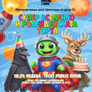 СУПЕР ВСЕЛЕНКО И РОДЕНДЕНСКАТА ТОРТА-интерактивна шоу-претстава за деца
